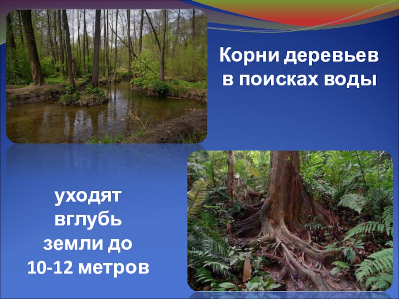 Корни деревьев в поисках водыуходят вглубь земли до 10-12 метров