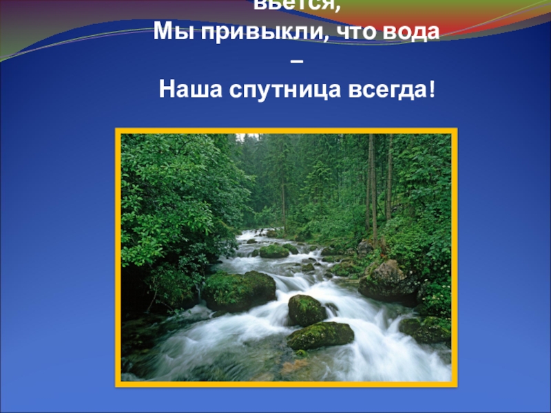Лентой серебристой вьётся,  Мы привыкли, что вода – Наша спутница всегда!