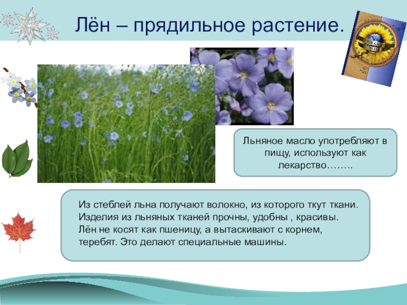 Льняное масло употребляют в пищу, используют как лекарство……..