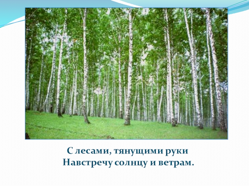 С лесами, тянущими рукиНавстречу солнцу и ветрам.