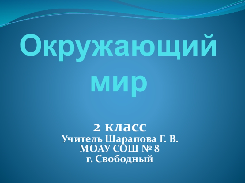 Окружающий мир2 класс Учитель Шарапова Г. В. МОАУ СОШ № 8 г. Свободный