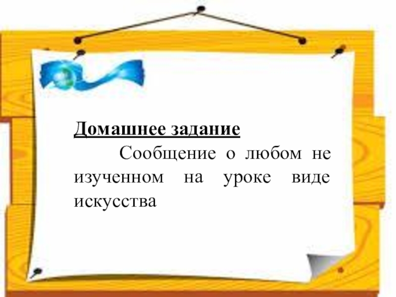 Домашнее задание   Сообщение о любом не изученном на уроке виде искусства