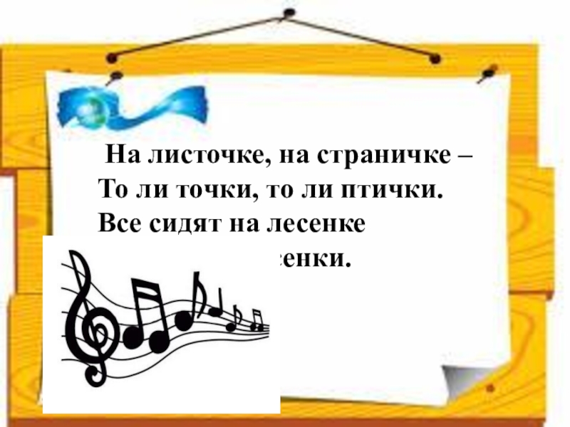 На листочке, на страничке – То ли точки, то ли птички.Все сидят на лесенкеИ щебечут песенки.