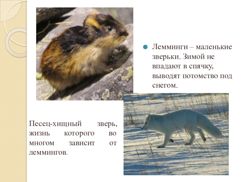 Песец-хищный зверь, жизнь которого во многом зависит от леммингов.