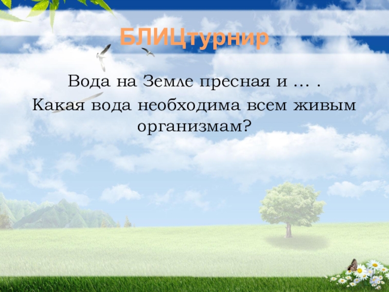 БЛИЦтурнирВода на Земле пресная и … .Какая вода необходима всем живым организмам?