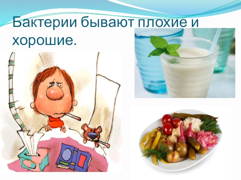 Слайд 7Бактерии бывают плохие и хорошие.