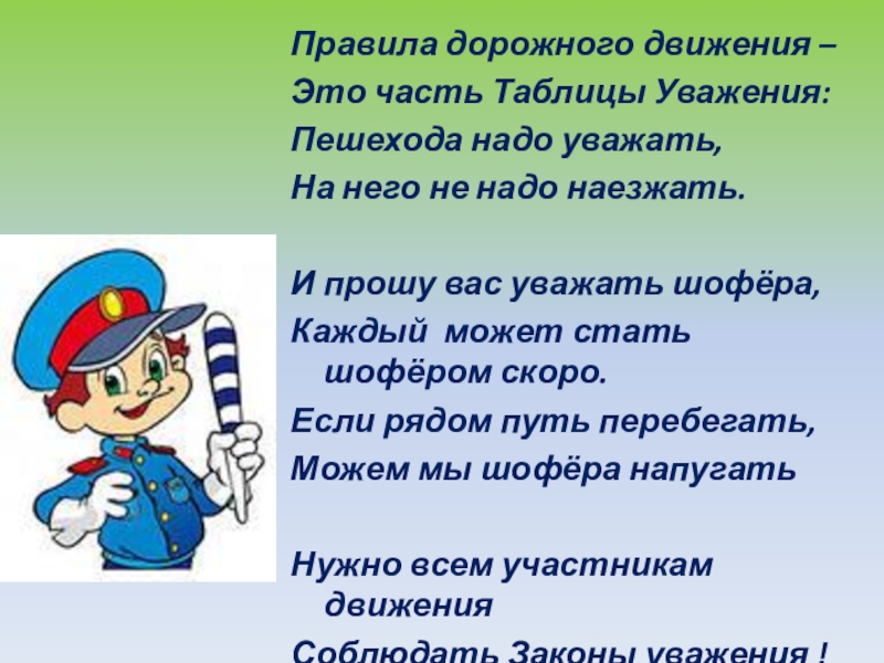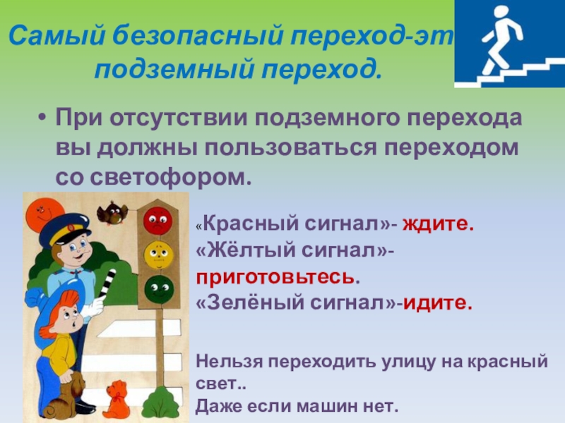 При переходе улицы обязательно надо посмотреть сначала налево, а дойдя до середины дороги – направо.