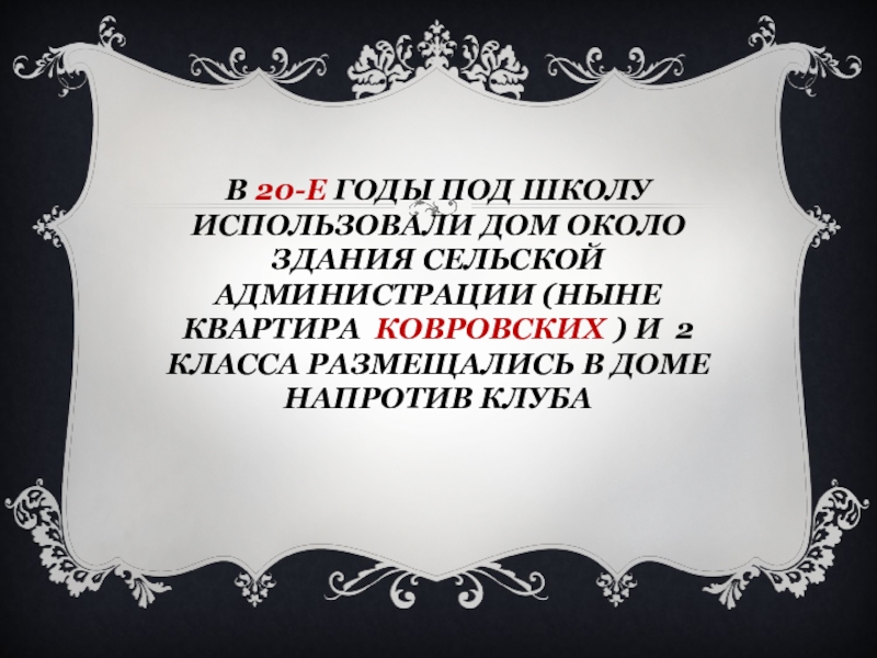 В 20-е годы под школу использовали дом около здания сельской администрации (ныне квартира  Ковровских ) и  2 класса размещались