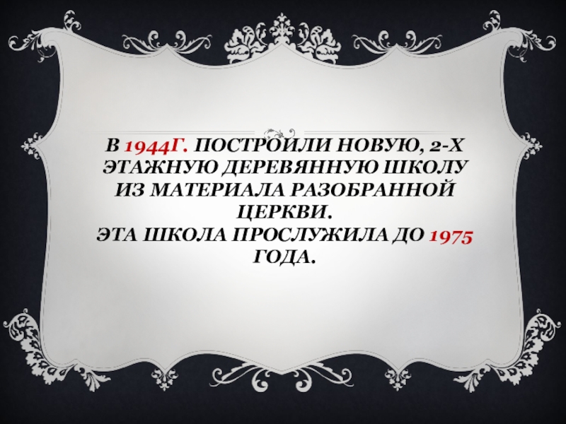 Слайд 10В 1944г. построили новую, 2-х этажную деревянную школу из материала разобранной