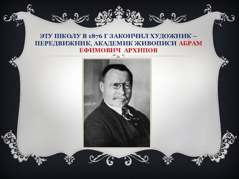 Эту школу в 1876 г закончил художник – передвижник, академик живописи Абрам Ефимович  Архипов