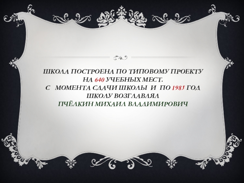 сдачи школы и по 1985 год школу возглавлял Пчёлкин Михаил Владимирович