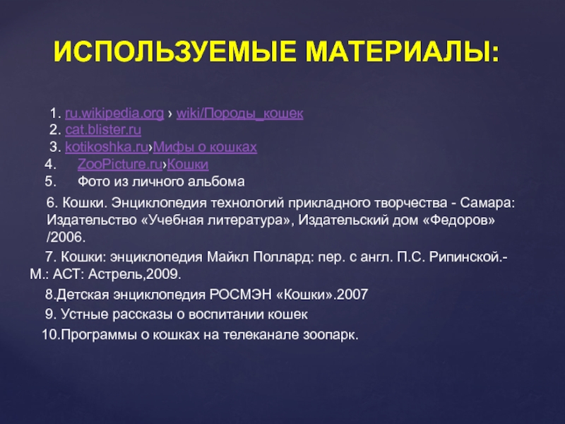 ИСПОЛЬЗУЕМЫЕ МАТЕРИАЛЫ: