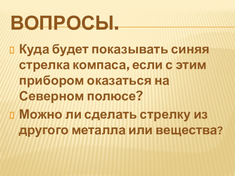 Вопросы.Куда будет показывать синяя стрелка компаса, если с этим прибором оказаться на Северном полюсе?Можно ли сделать стрелку