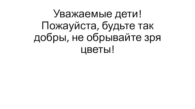 Слайд 15Уважаемые дети! Пожауйста, будьте так добры, не обрывайте зря цветы!