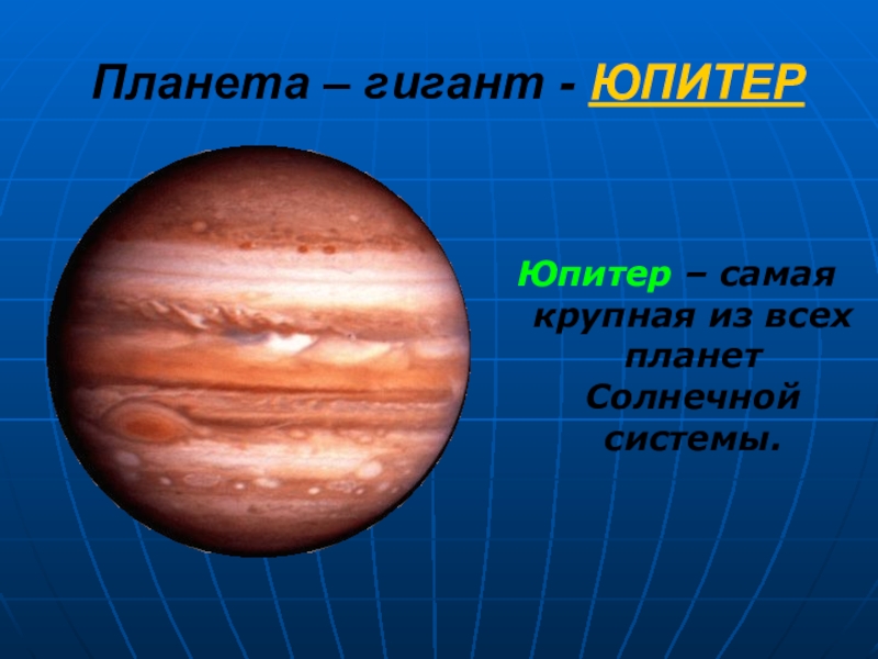 Планета – гигант - ЮПИТЕРЮпитер – самая крупная из всех планет Солнечной системы.