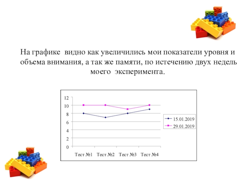 Далее я каждый день занимался конструированием. Итоговое тестирование я повторил через две недели.