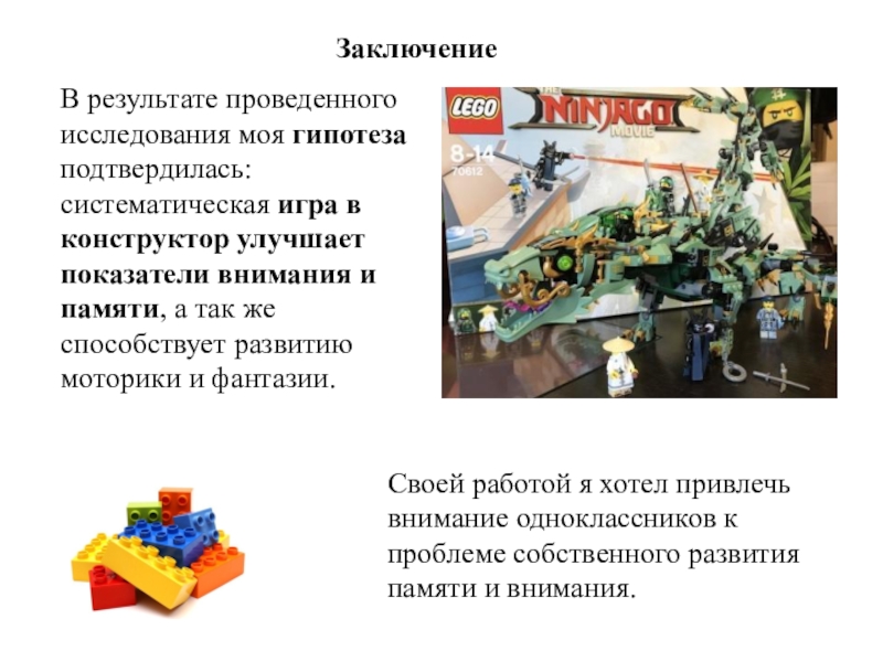 Своей работой я хотел привлечь внимание одноклассников к проблеме собственного развития памяти и внимания.