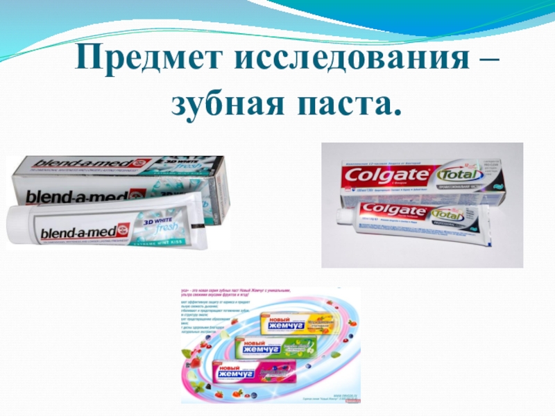 Для этого я взял зубные пасты известных производителей с фтором и кальцием – «Новый жемчуг», «Blend-a-med», «Colgate».