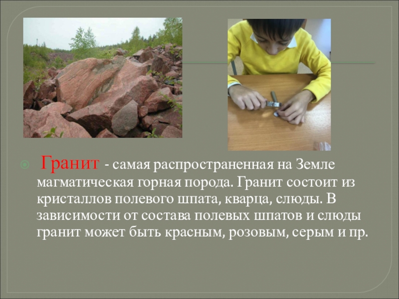 Гранит - самая распространенная на Земле магматическая горная порода. Гранит состоит