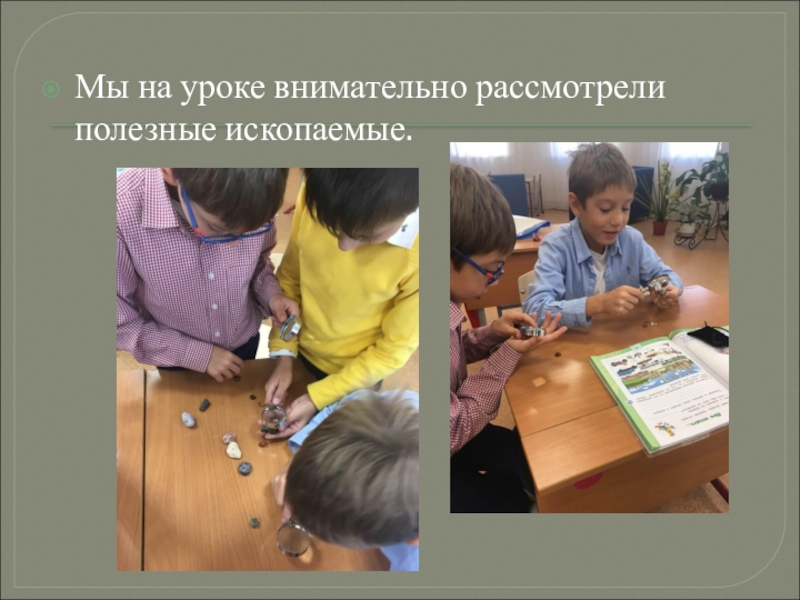 Мы на уроке внимательно рассмотрели полезные ископаемые.