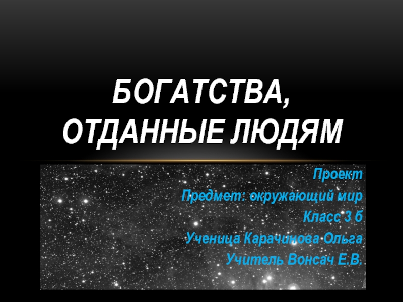 БОГАТСТВА, ОТДАННЫЕ ЛЮДЯМ
