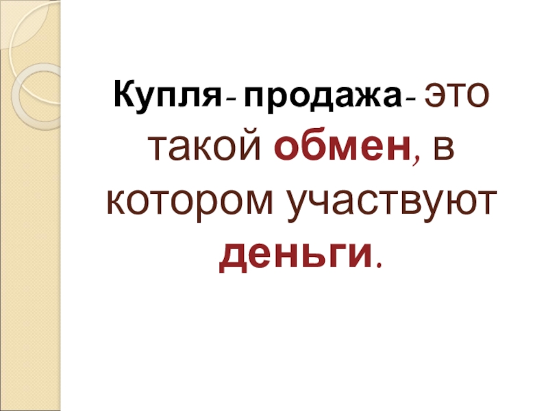 Слайд 15Купля- продажа- это такой обмен, в котором участвуют деньги.