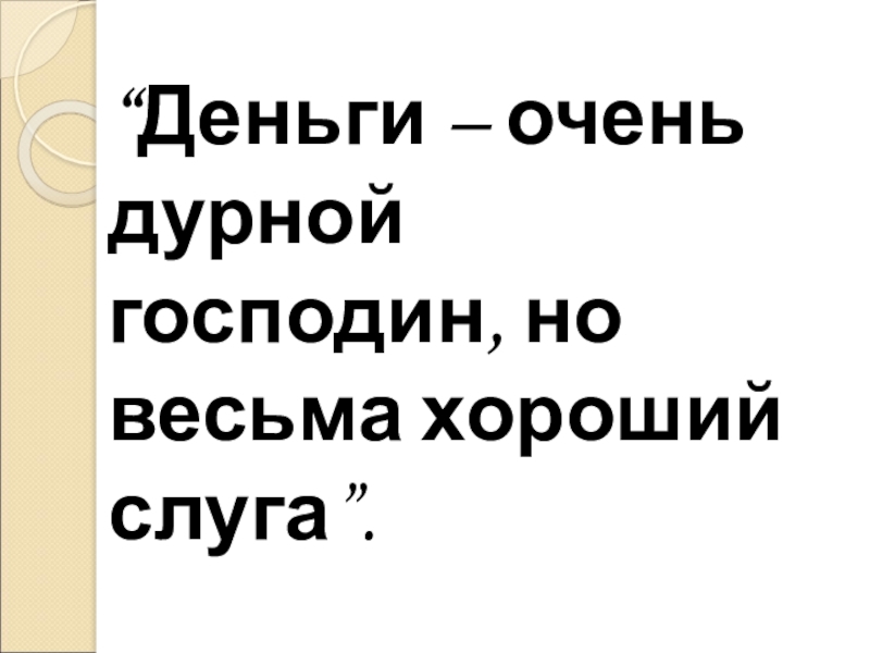 Слайд 36“Деньги – очень дурной господин, но весьма хороший слуга”.