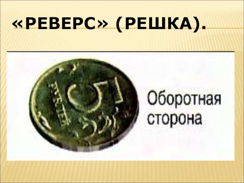 Слайд 32«РЕВЕРС» (РЕШКА).