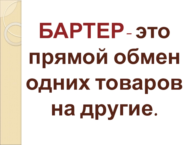 Слайд 13БАРТЕР- это прямой обмен одних товаров на другие.
