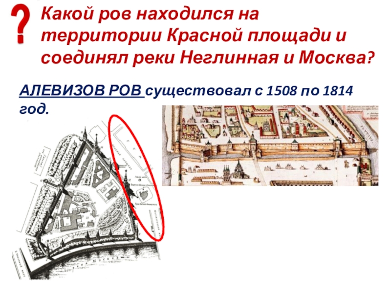 Слайд 15Какой ров находился на территории Красной площади и соединял реки Неглинная