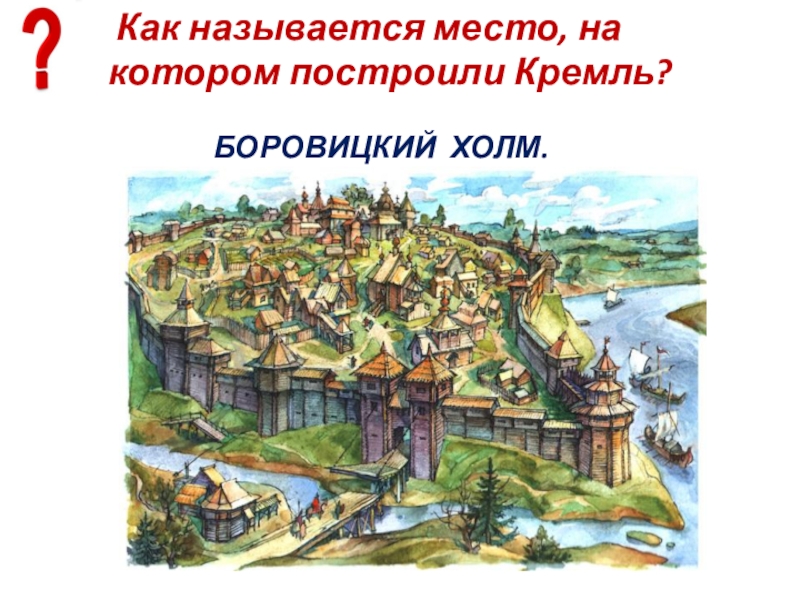 Слайд 3 Как называется место, на котором построили Кремль?