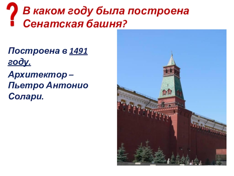 Слайд 99В каком году была построена Сенатская башня?