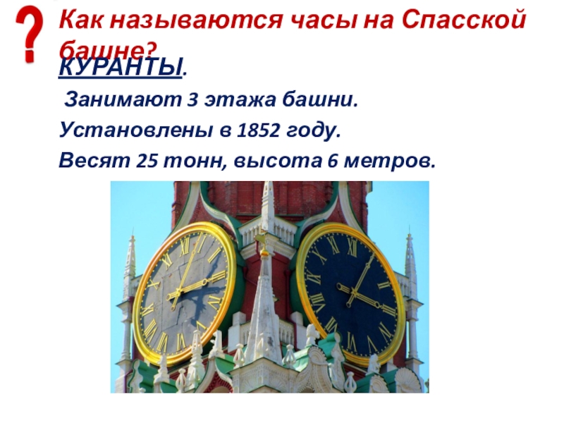 Слайд 23Как называются часы на Спасской башне?