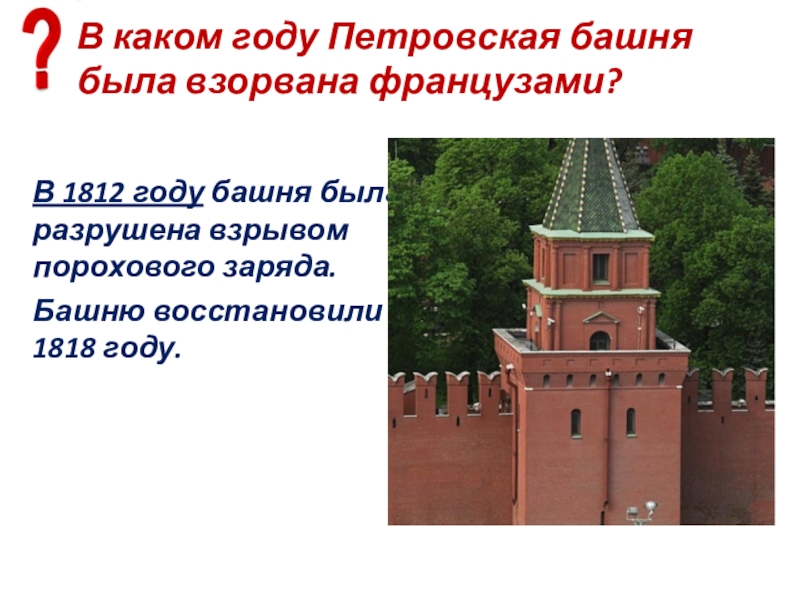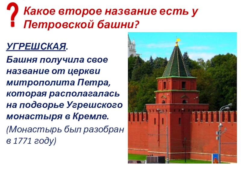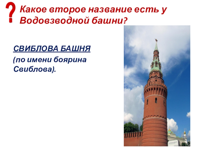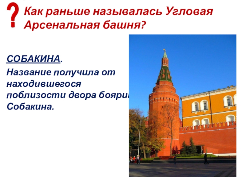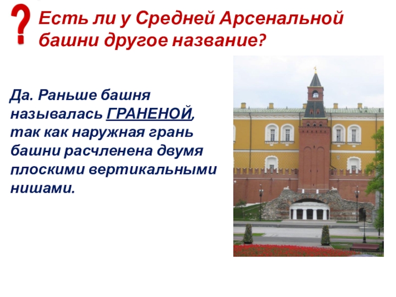 Слайд 88Есть ли у Средней Арсенальной башни другое название?