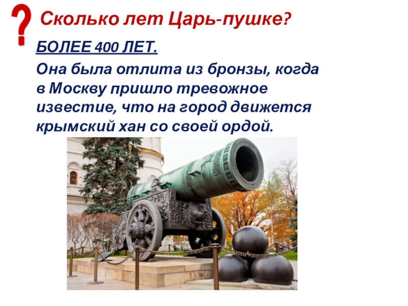 Слайд 101Сколько лет Царь-пушке?
