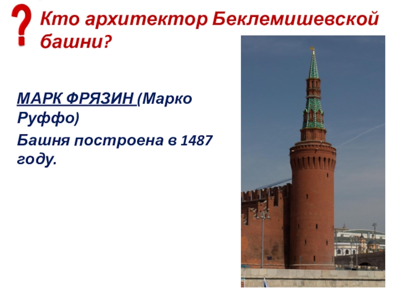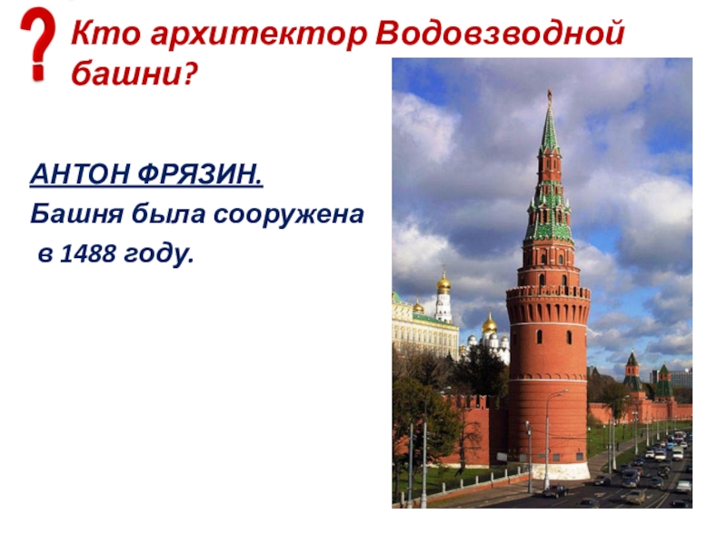 Слайд 70В каком веке была построена Боровицкая башня и кем?