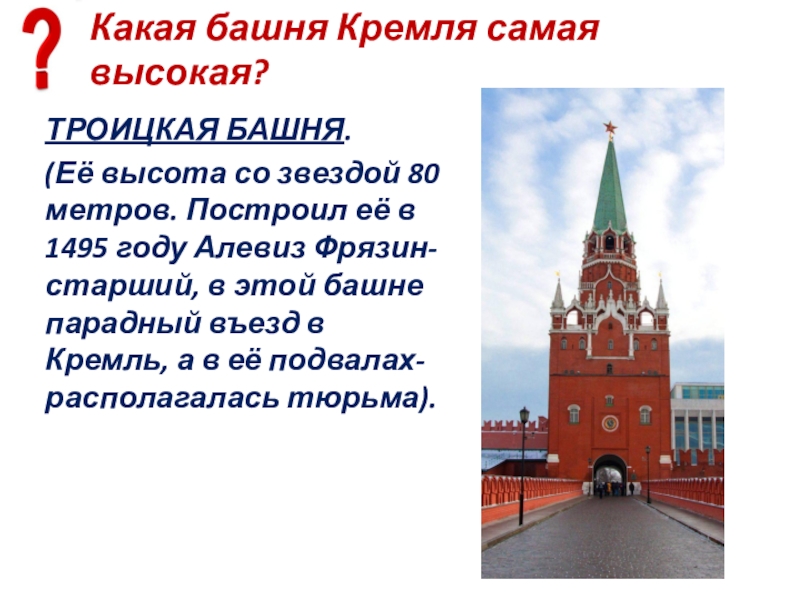 Слайд 81Какая башня Кремля самая высокая?