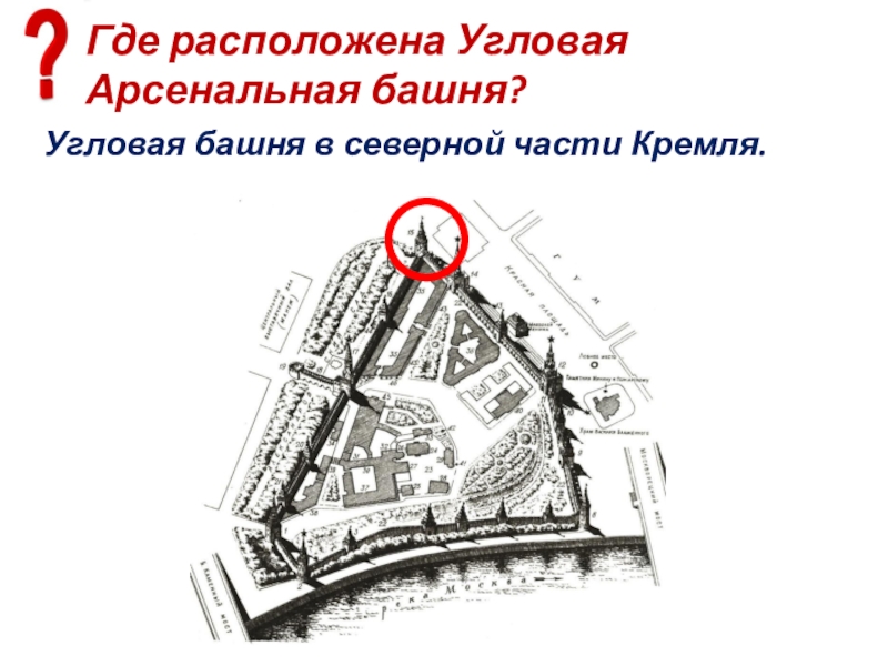 Слайд 92Где расположена Угловая Арсенальная башня?