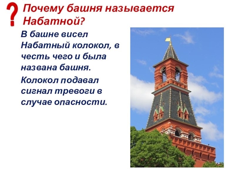 Слайд 32Почему башня называется Набатной?