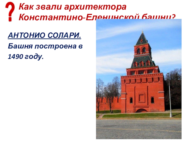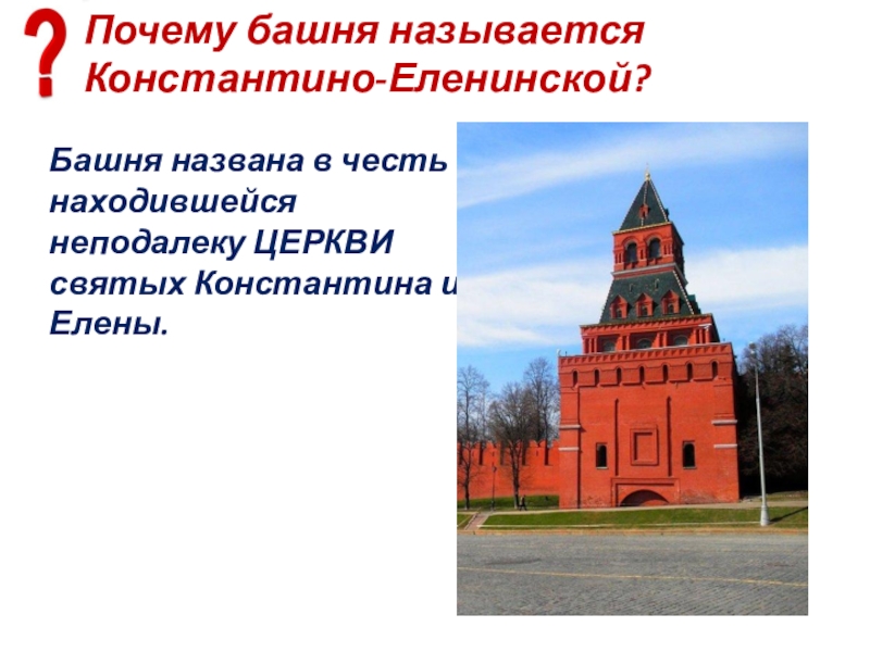 Слайд 35Почему башня называется Константино-Еленинской?