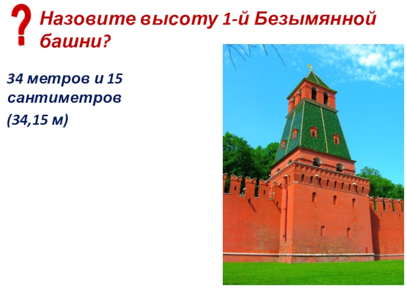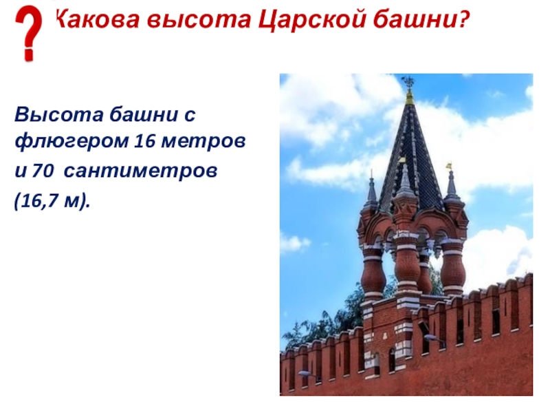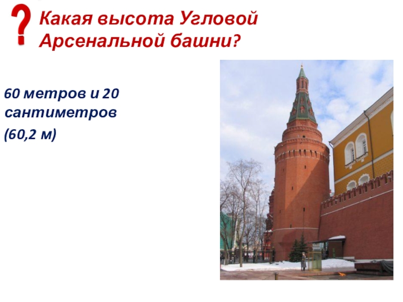 Слайд 94Какая высота Угловой Арсенальной башни?