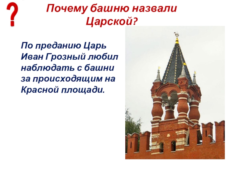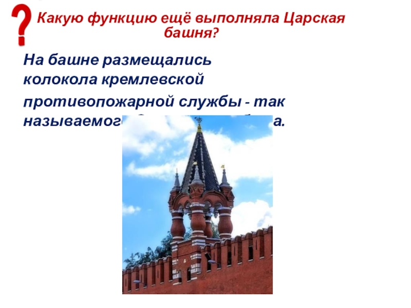Слайд 28Какую функцию ещё выполняла Царская башня?
