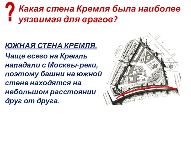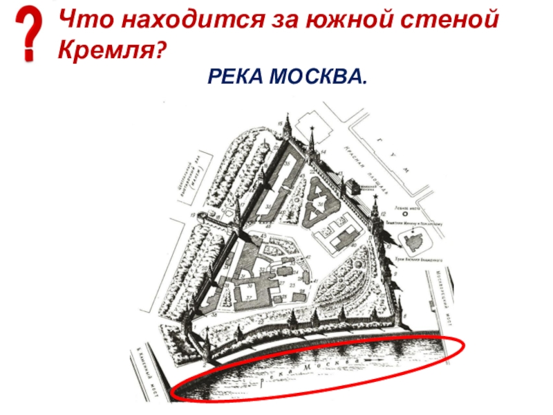 Слайд 13Что находится за южной стеной Кремля?
