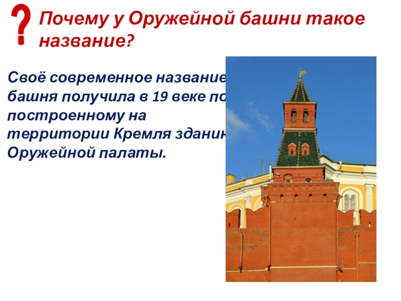 Слайд 76Почему у Оружейной башни такое название?