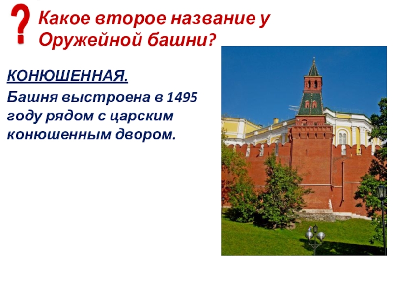 Слайд 78Какое второе название у Оружейной башни?