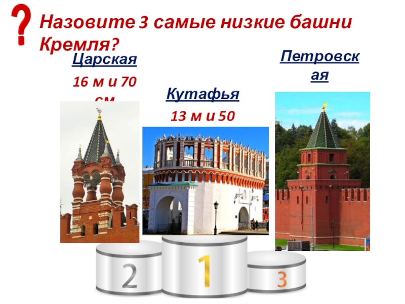 Слайд 19Назовите 3 самые низкие башни Кремля?