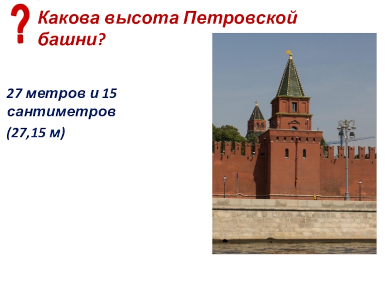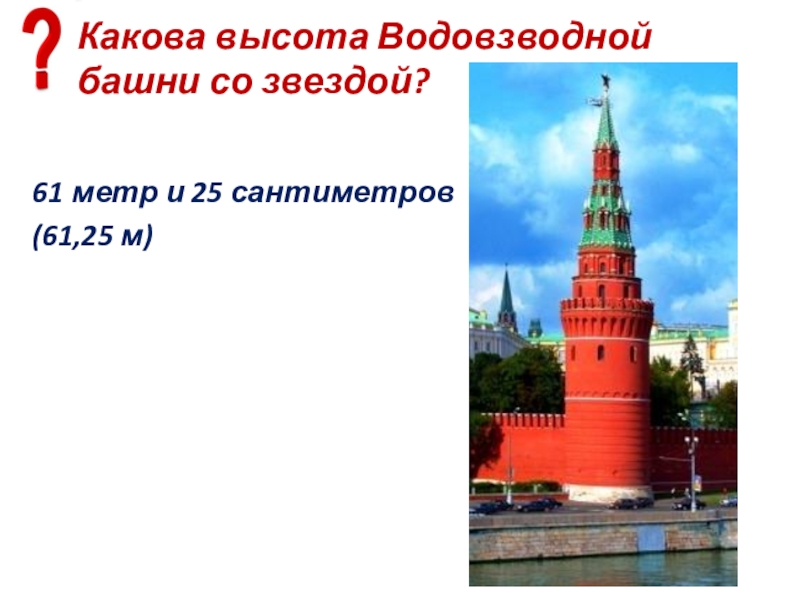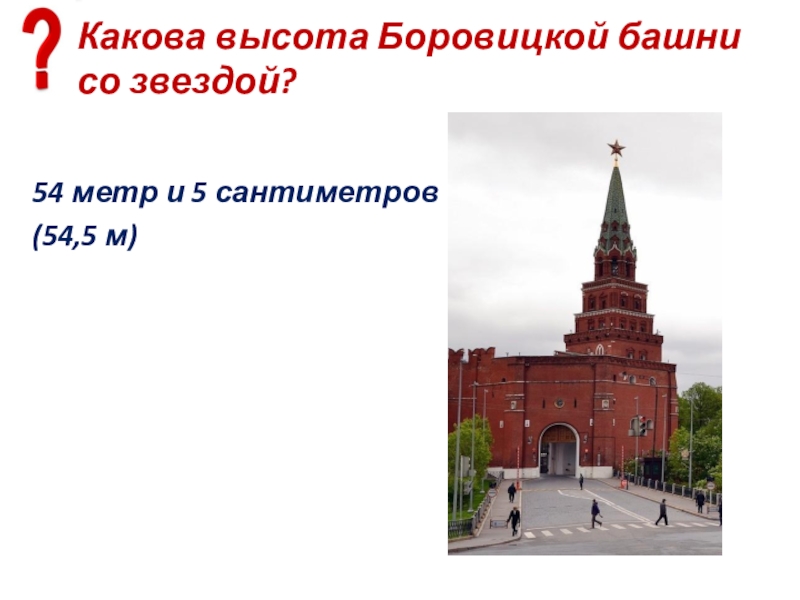 Слайд 75Какова высота Боровицкой башни со звездой?