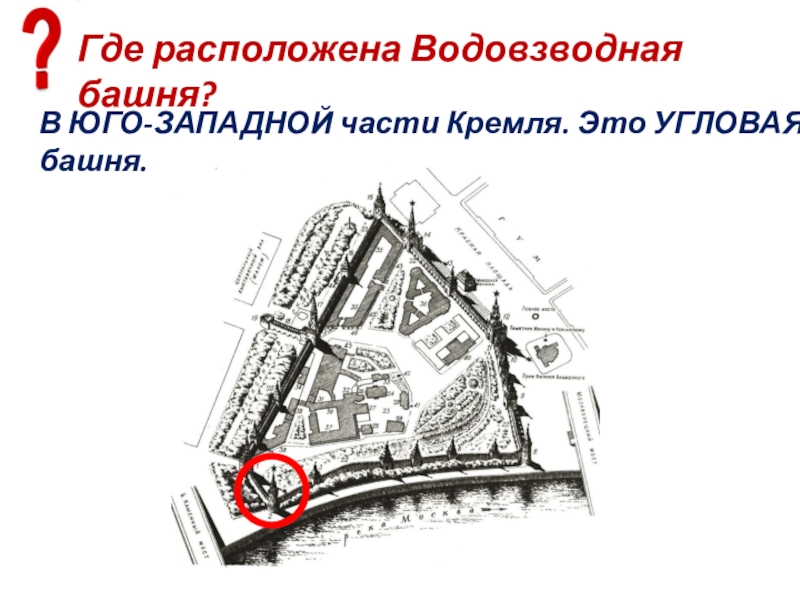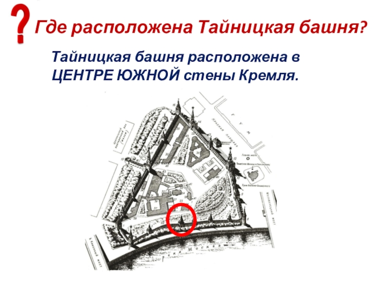Слайд 14Какая река протекает вдоль западной стены Кремля?