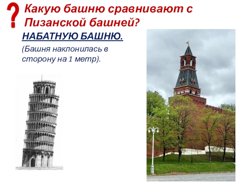 Слайд 29Какую башню сравнивают с Пизанской башней?