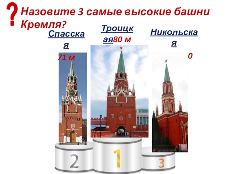 Слайд 18Назовите 3 самые высокие башни Кремля?